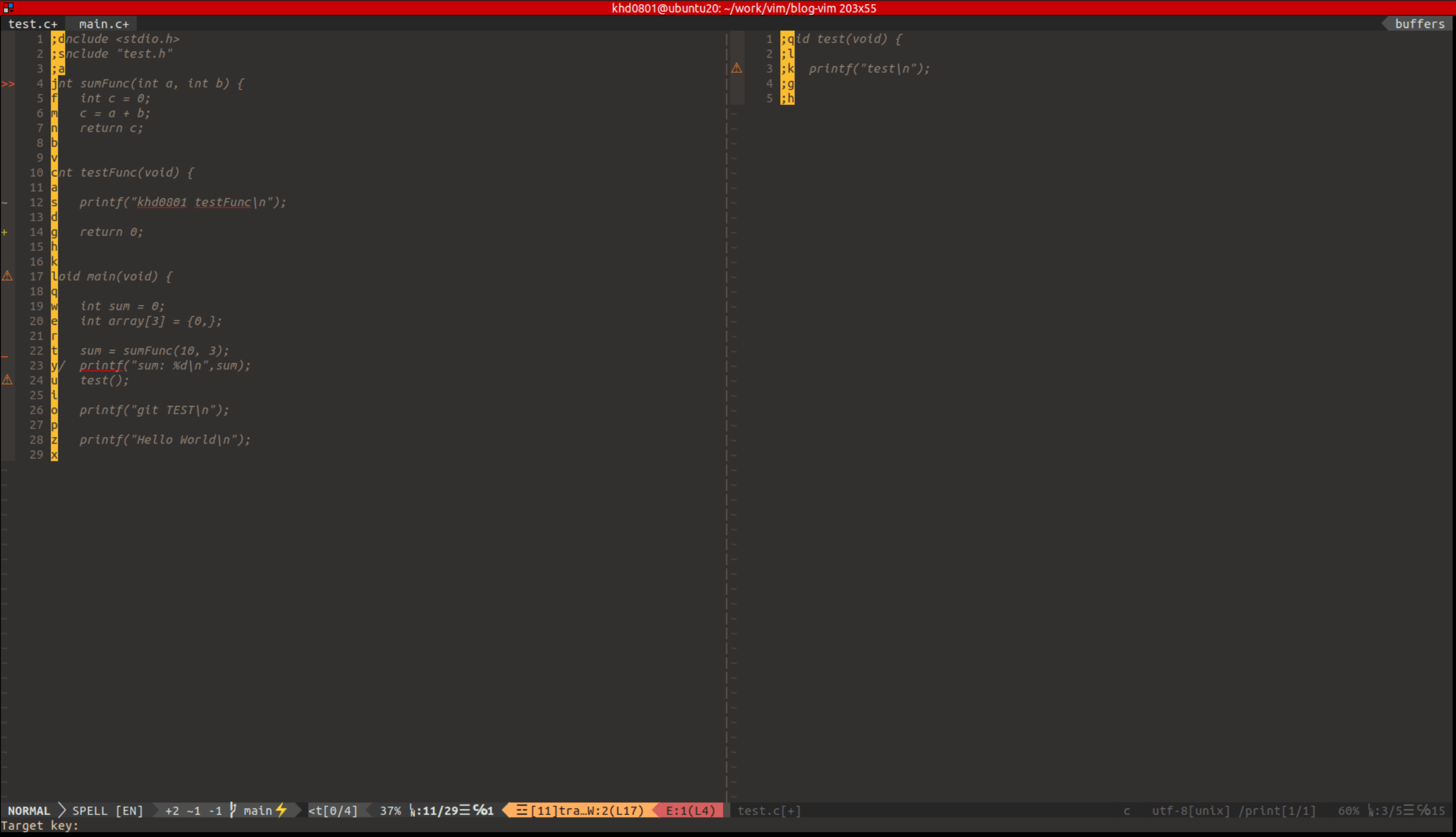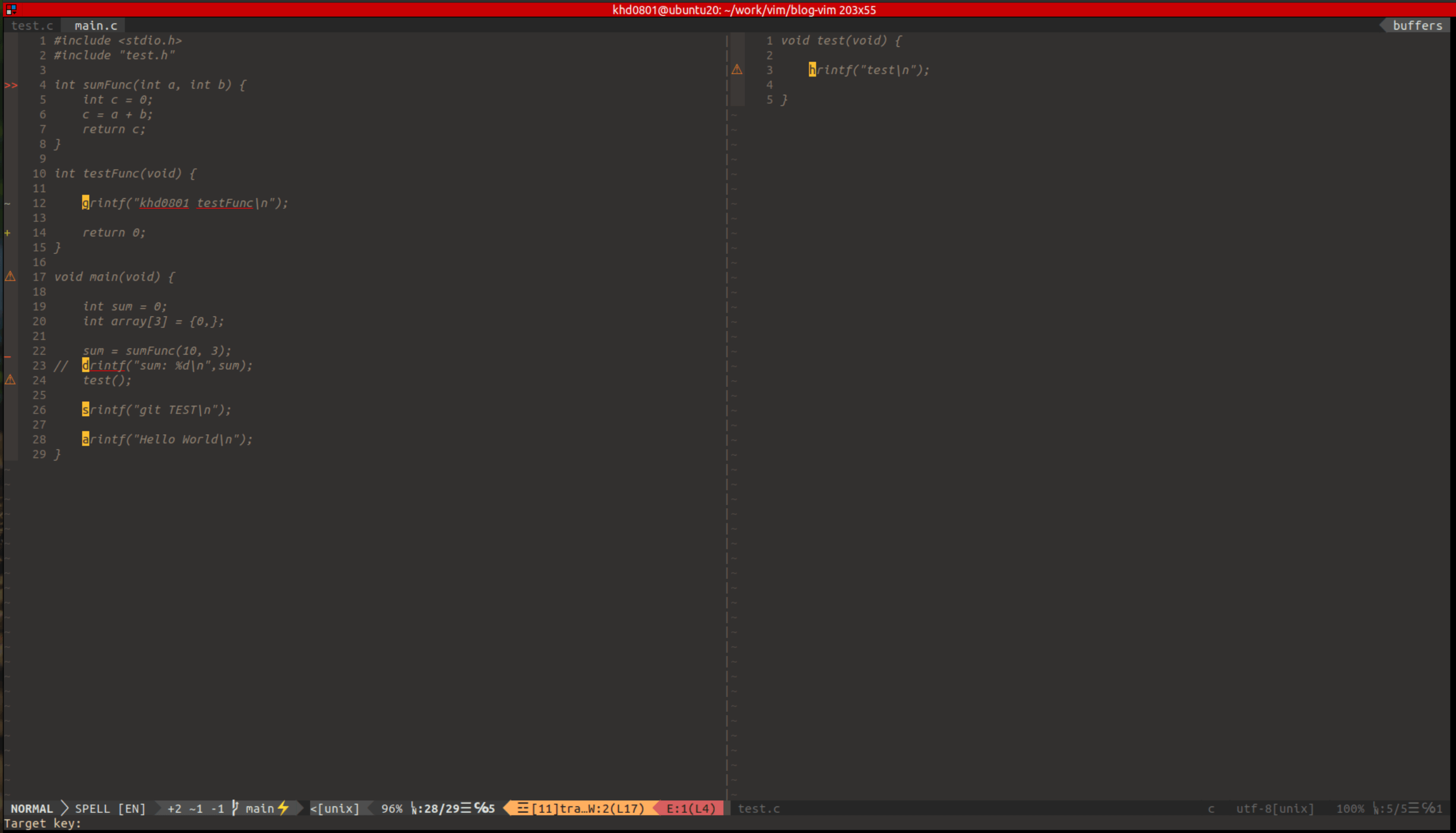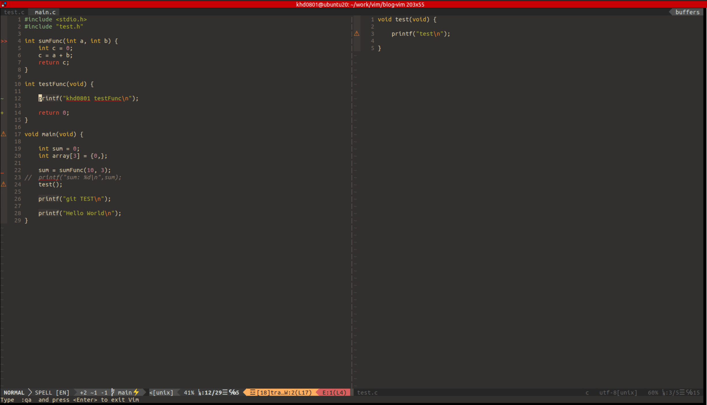 " vim 사용중 git 명령어 사용
