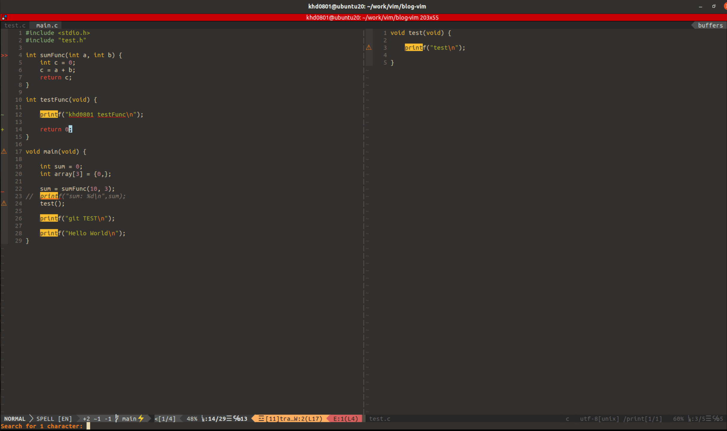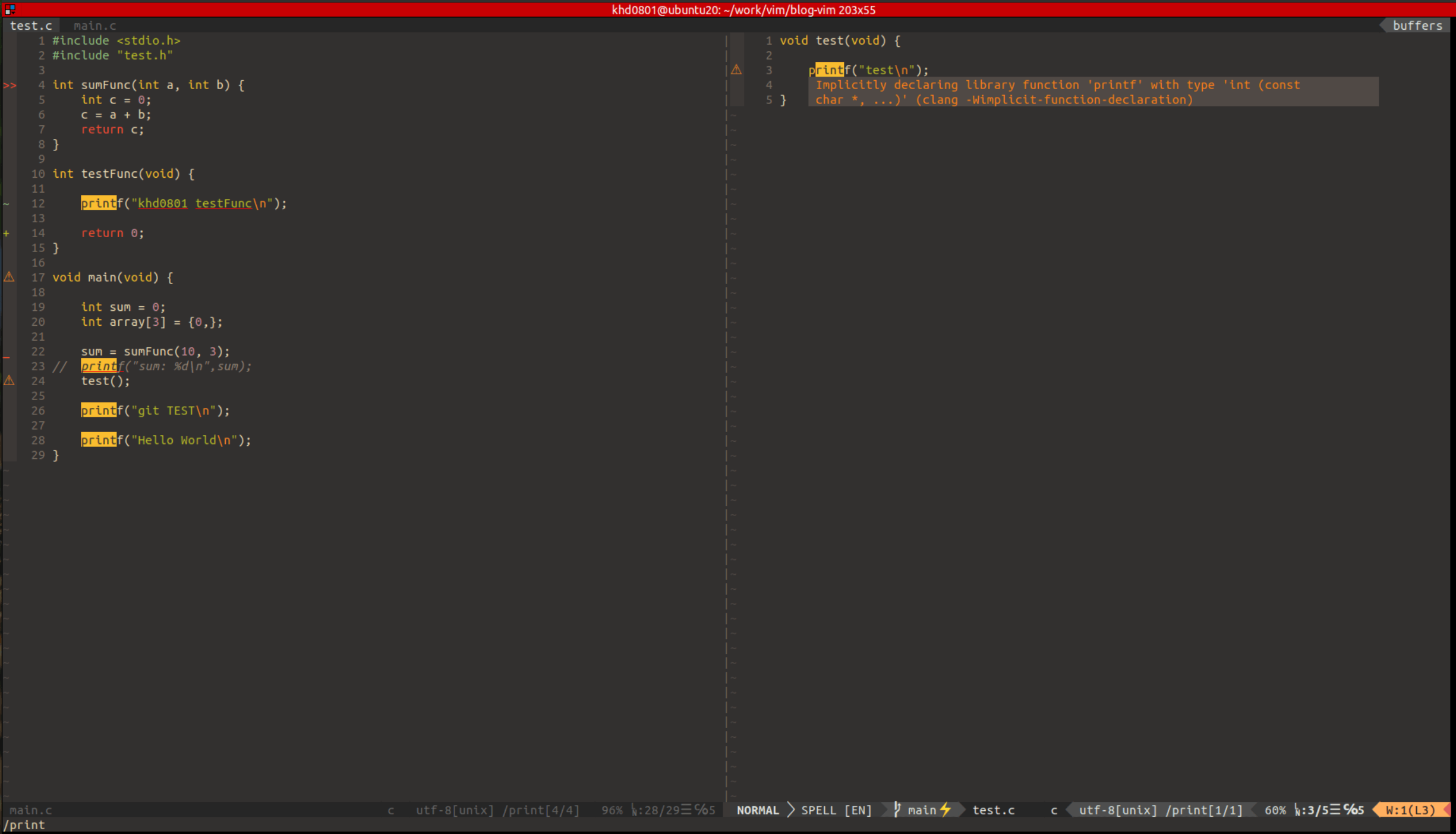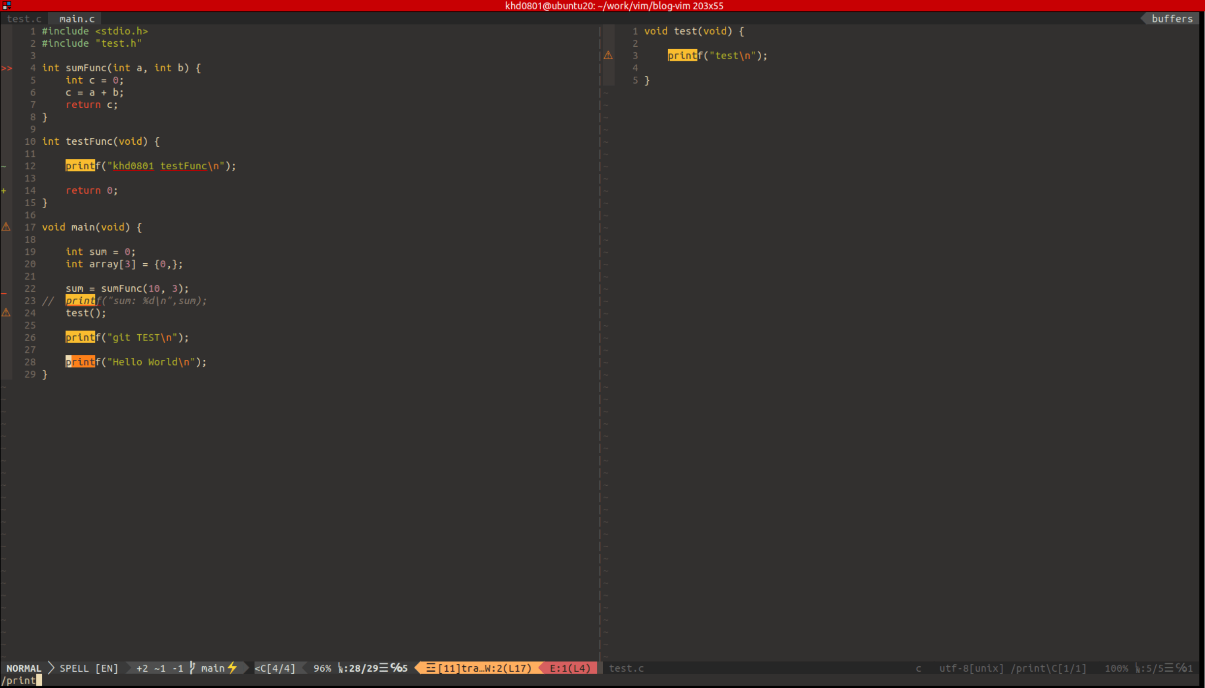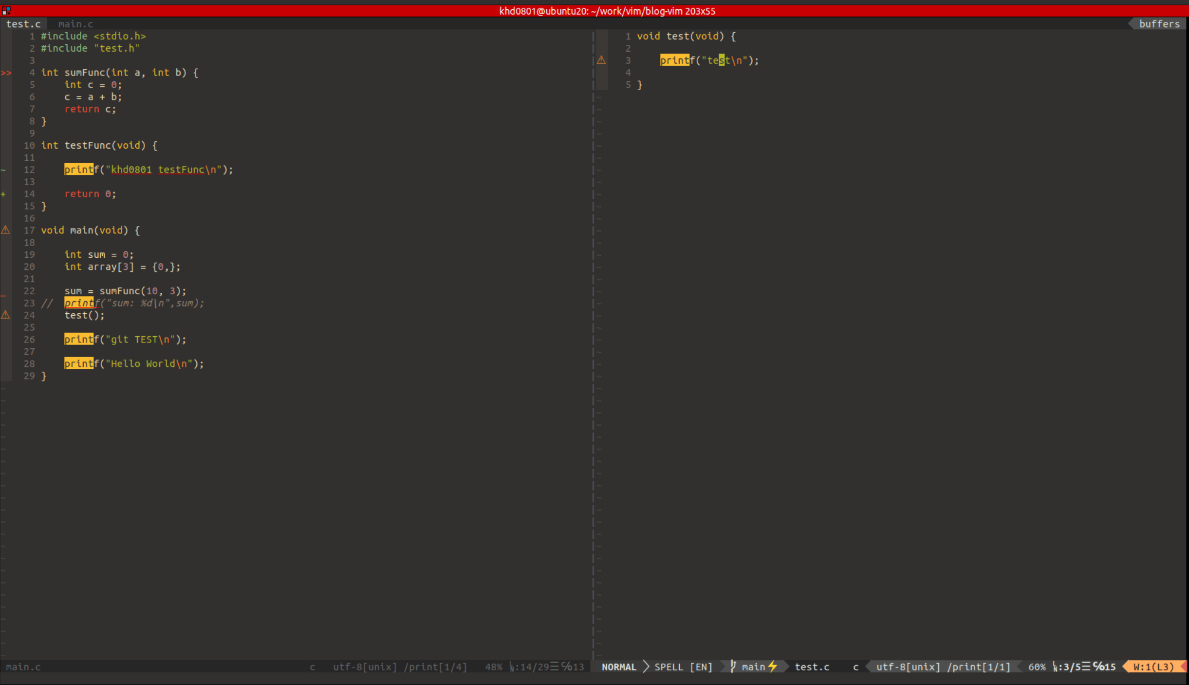 5. 현재까지의 설정이 적용된 vim 코드 뷰