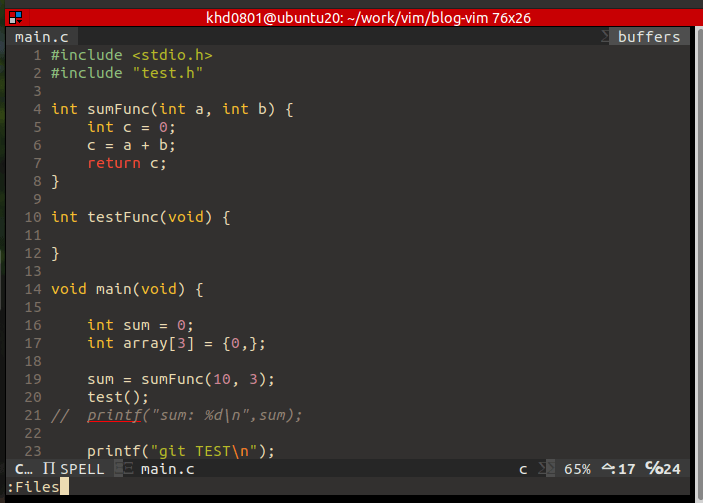 5. 현재까지의 설정이 적용된 vim 코드 뷰