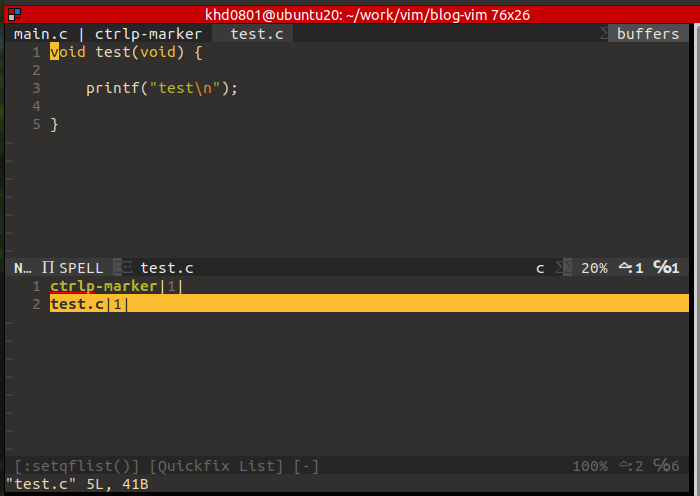 5번째 줄 function!은 함수로서 endfunction까지가 해당 함수의 내용이다. 이 함수는 fzf로 실행된 목록 중에 mark로 선택된 리스트들을(tab 키로 선택 가능) 새버퍼를 열어 파일의 내용과 분활된 아래창에는 Quickfix List로 fzf에서 mark로 선택된 파일들의 목록이 보인다.(아래 QuickFix List 참고)