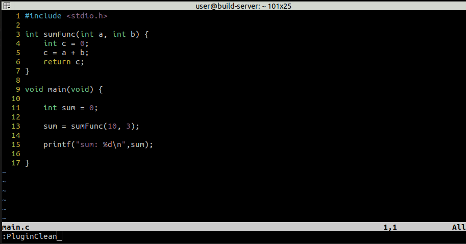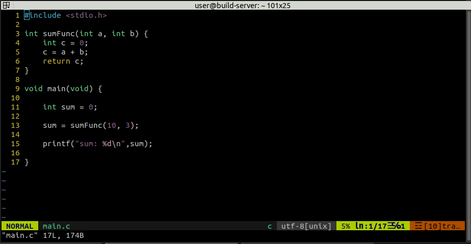 5. 현재까지의 설정이 적용된 vim 코드 뷰