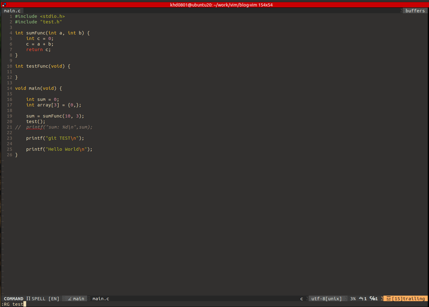 5. 현재까지의 설정이 적용된 vim 코드 뷰